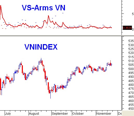 Nhóm MA ngắn hạn (tương đương vùng 63. VS-Market Strength: VS-Arms VN tính cho cả hai sàn ngày 22/11/2013 đạt giá trị 0. 2 – 64 điểm) đang được test lại